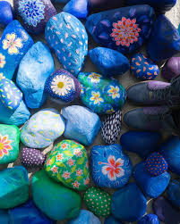 Blaue Steine Ich Habe Sie Gestern Gleich Noch Auf Dem Bambushugel Verteilt Ich Zeige Dann Spater Wie Es Aussieht Aber Steine Bemalen Steine Deko
