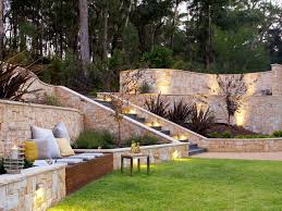 Sandstone Feature Walls Amid A Bushland Retreat In 2020 Sloped Backyard Sloped Garden Backyard Garden Design