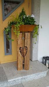 Holzbalken Als Deko Am Eingang Balken Holz Laterne Blumentopfstander Selbst Verarbeitet Aus Alten Holzbalken Der Topfblumen Alte Holzbalken Dekoration