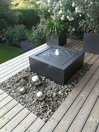 Moderner Aluminium Zierbrunnen Als Wassertisch Auf Einer Holz Terrasse Slink Ideen Mit Wasser Gartenbrunnen Wasserspiel Garten Garten