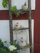 Meine Huhner Sind Glasiert Frostsicher Gebrannt Und Auf Der Alten Leiter Monti Https Danielle Repingram Co Garden Pottery Flower Pot Crafts Garden Deco