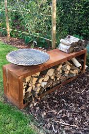 Kleines Holzlager Aus Cortenstahl Fur Feuerstelle Und Grillplatz Holzlager Brennholz Garten