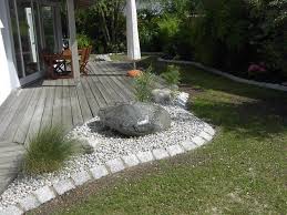 Mediterraner Garten Mit Sitzplatz Aus Polygonalpflaster Rattan Sitzmobeln Holzsteg Uber Kiesbeet Und Grossem Fin Mediterraner Garten Garten Mediteraner Garten