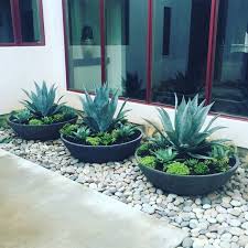 Diese Sukkulenten Pflanzgefasse Passen Gut Zu Diesem Haus Im Spanischen Stil Die Front Yard Landscaping Design Front Garden Landscape Rock Garden Landscaping